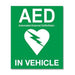 The FastAid Defibrillator In Vehicle Sticker clearly communicates details of location for defibrillators in vehicles, ensuring compliance and awareness.
